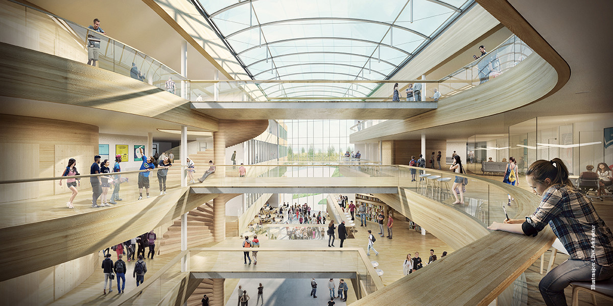 The new Horten Upper Secondary School was ready to welcome 1,200 pupils in autumn 2019. It is the first school building to be built to the energy-plus standard in Norway.
