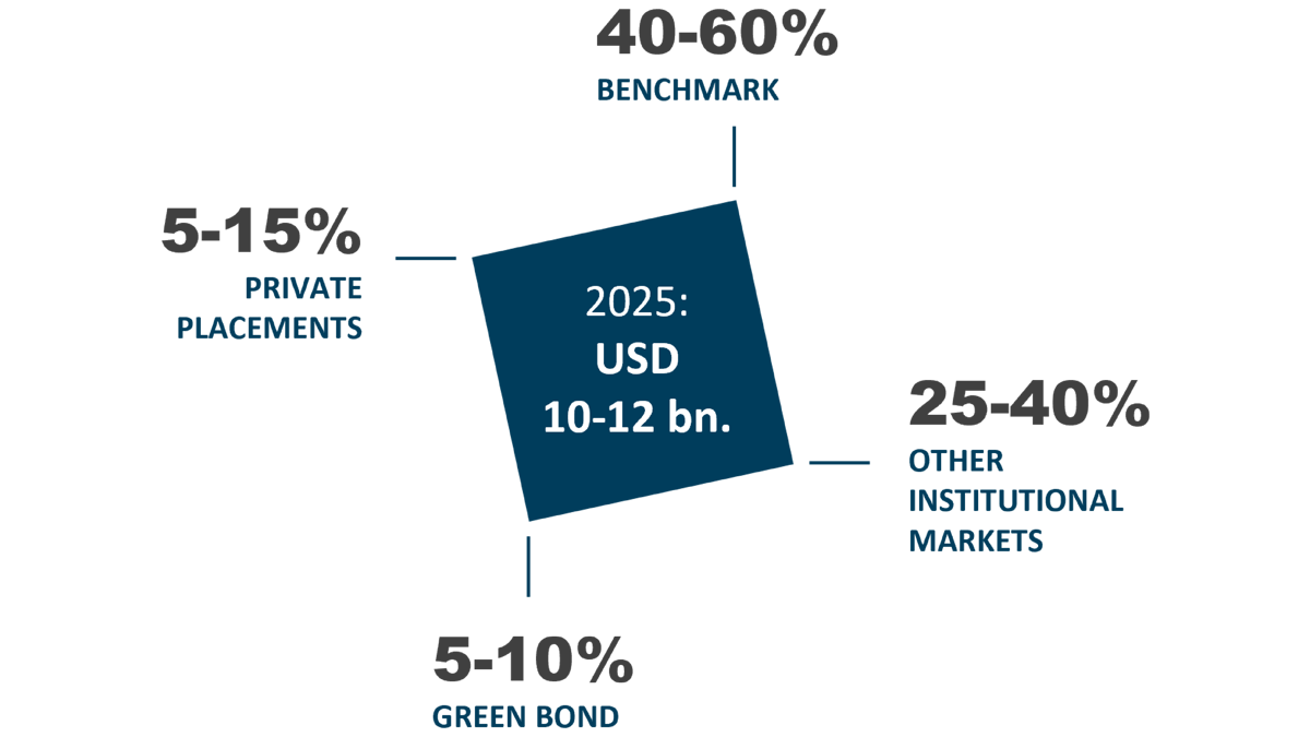 KBN is targeting an estimated total issuance program of USD 10-12 billion equivalent in 2025.