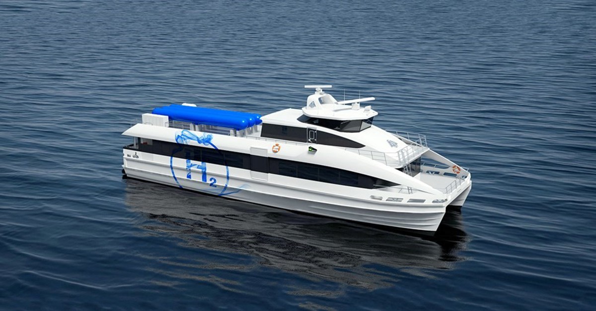 Flora kommune vant Årets lokale klimatiltak i 2018 med sin hydrogendrevne passasjerbåt. Illustrasjon: Brødrene Aa