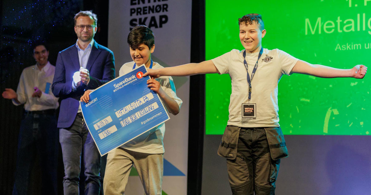 De første vi møter på Askim ungdomsskole er Isak og Abdullah som står bak elevbedriften Metallgutta, der gjenbruk og redesign av metall står i fokus. De stakk av med prisen for beste grønne entreprenør i fylkesmesterskapet.