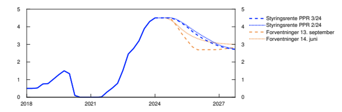 Kilde: Pengepolitisk rapport nr 3/2024 fra Norges Bank. Klikk på figuren for større versjon.