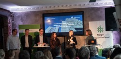 70 deltakere fra finansbransjen, byggenæringen og kommunesektoren deltok på KBN og Norsk Skogeierforbundet sitt frokostmøte Hvordan gjøre det lønnsomt å bygge med klimavennlige materialer?